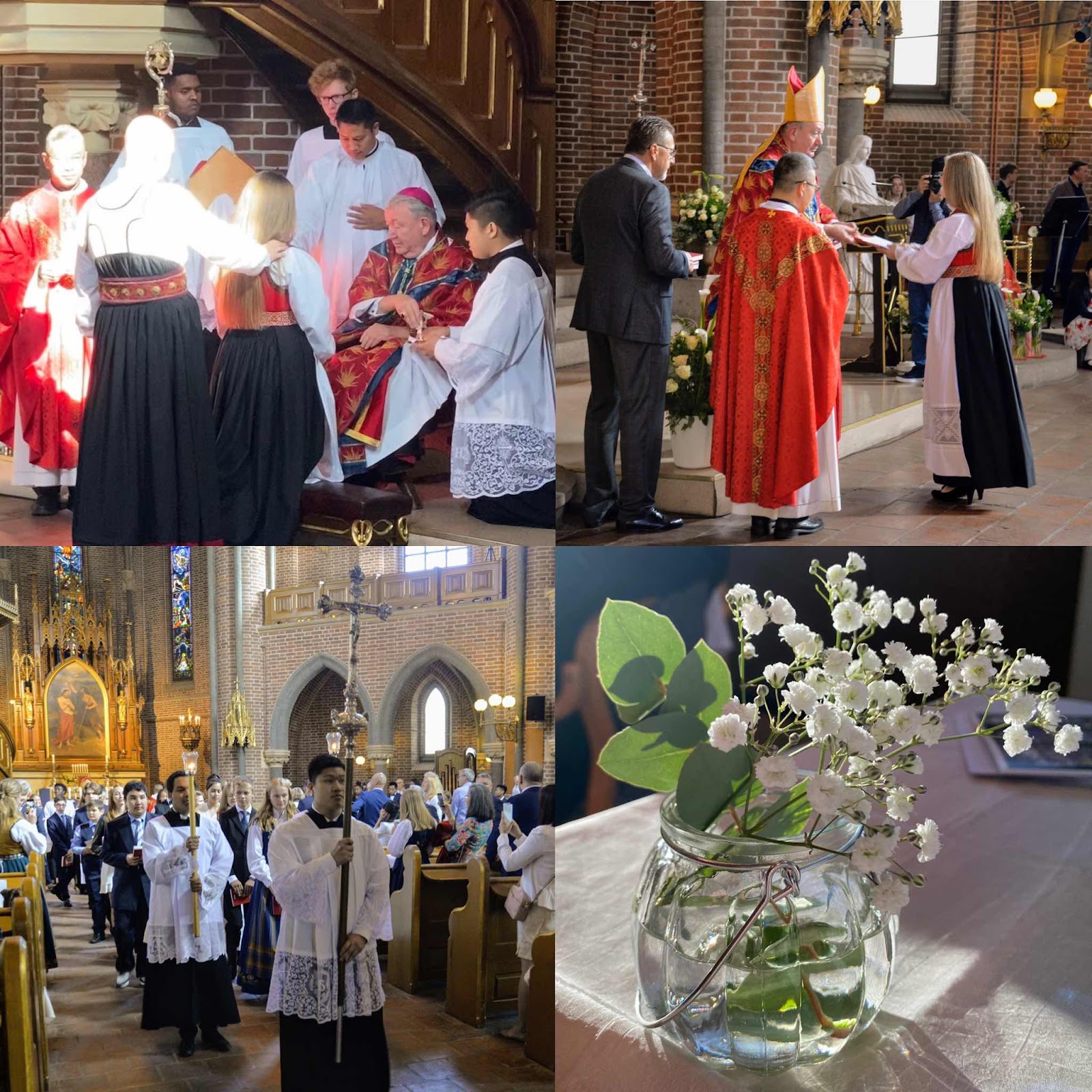 For en velsignet konfirmasjonsdag! Sunniva mottok fermingens sakrament av biskop Bernt Eidsvig på lørdag, og alle hjerter fryder seg. To uker før det mottok Johannes sin første hellige kommunion (nattverd).
