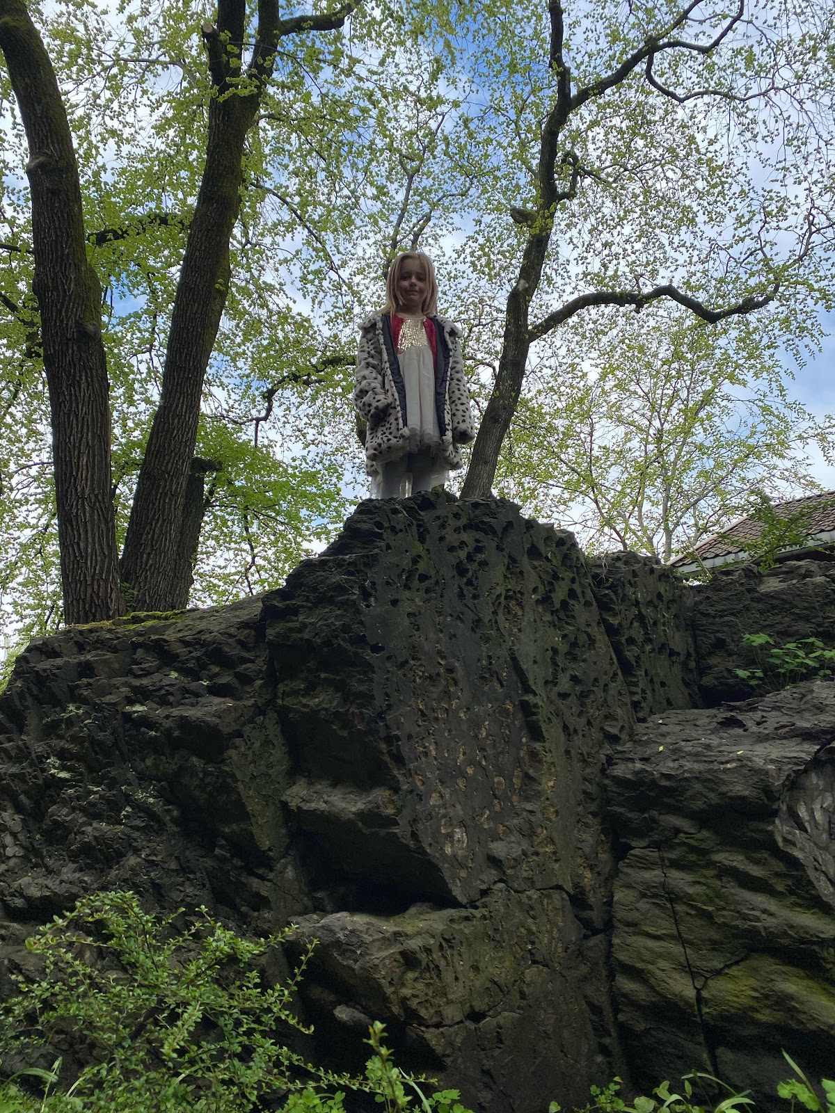 | På Kristi Himmelfartsdag har det mange steder vært vanlig å dra på landtur, gjerne på en høyde, slik at vi kommer opp mot himmelen. Maria fant et lite Himmelfartsberg i nonnenes hage. |