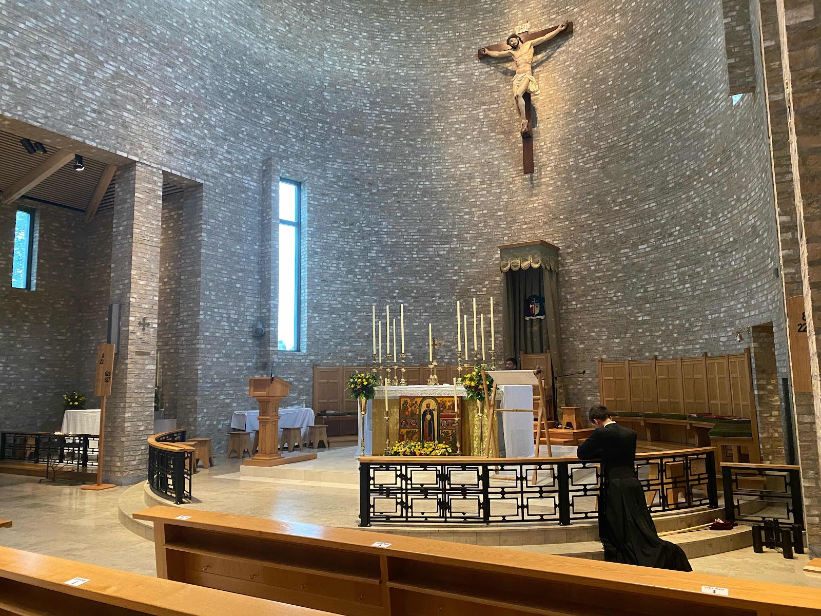 Vi sang "Be for oss, Hellig Olav" da vi gikk inn i Nidarosdomen. Sangen ljomet i katedralen. Det første pilegrimene gjorde var å knele ned (se også det øverste bildet i denne bloggposten) og motta velsignelsen.