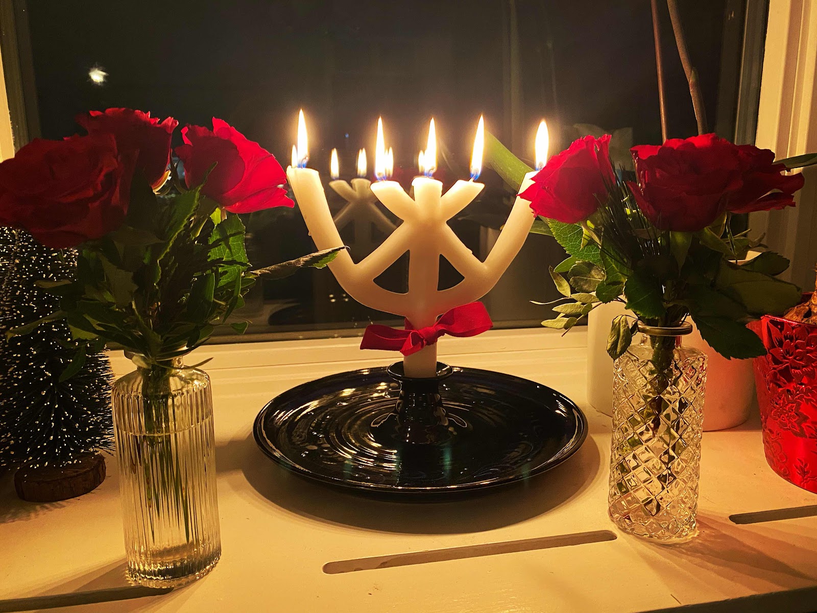 | Det store, flettede, femarmete julelyset vårt får brenne helt ned på epifanidagen, 6. januar. |